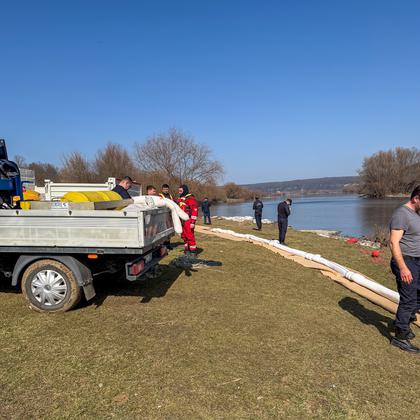 Specialiști din cadrul Inspectoratului General pentru Situații de Urgență din România și Apele Române...