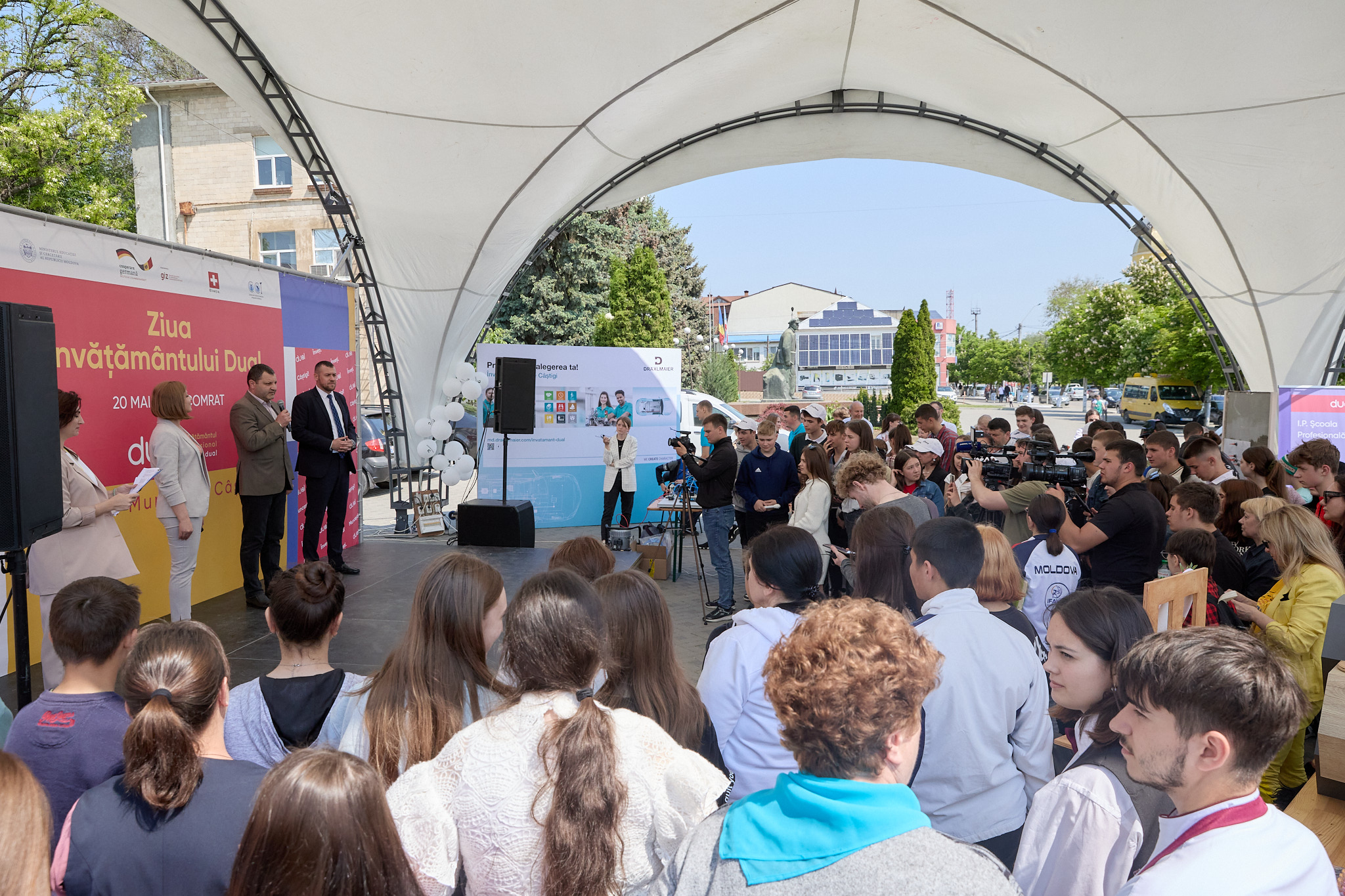 De Ziua Învățământului Dual la Comrat, mai mulți elevi din zona de sud a Republicii Moldova au aflat despre cele mai recente evoluții de pe piața muncii, dar și despre o serie de meserii interesante și atractive din punct de vedere financiar. Totodată, tinerii au avut posibilitatea să se informeze despre oportunitățile și avantajele învățământului dual – un concept inovativ pentru țara noastră. În cadrul acestei forme de învățământ, elevii fac orele teoretice în instituția de învățământ, iar cele practice - la întreprindere, beneficiind și de bursă, și de remunerație.