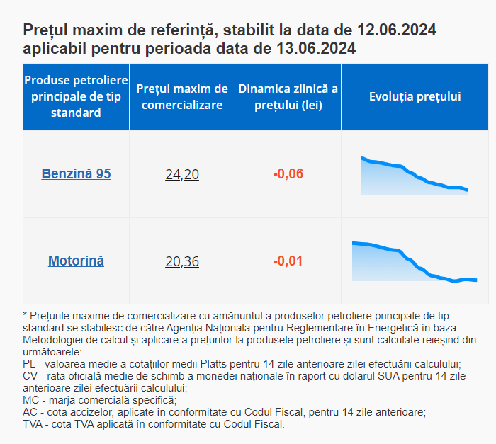 Agenţia Naţională pentru Reglementare în Energetică a stabilit preţuri noi la carburanţi pentru joi, 13 iunie.