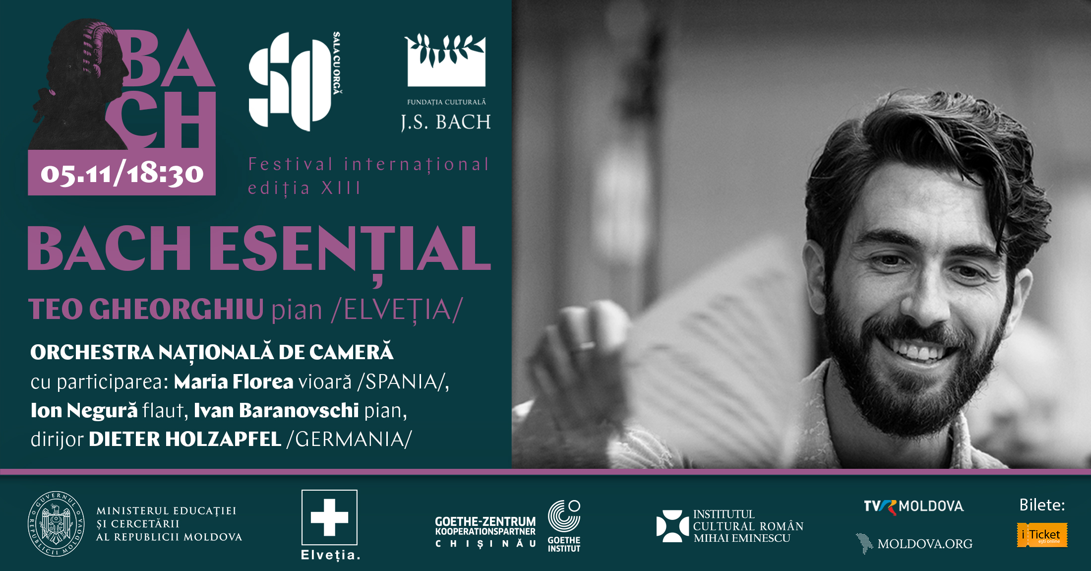 Deschiderea festivalului va avea loc pe 5 noiembrie, cu programul BACH ESENȚIAL, care dezvăluie geniul compozitorului, oferind o privire asupra contribuțiilor sale fundamentale în muzica universală. Concertul va fi susținut de Orchestra Națională de Cameră, sub bagheta dirijorului Dieter Holzapfel din Germania. Solistul invitat, pianistul elvețian Teo Gheorghiu, se bucură de un succes considerabil în întreaga lume, fiind un adevărat „povestitor poetic” al pianului. Stilul său captivant a fascinat audiențele în săli renumite precum Wigmore Hall și Barbican. Alături de el vor evolua pe scenă violonista Maria Florea din Spania, flautistul Ion Negură și pianistul Ivan Baranovskii.