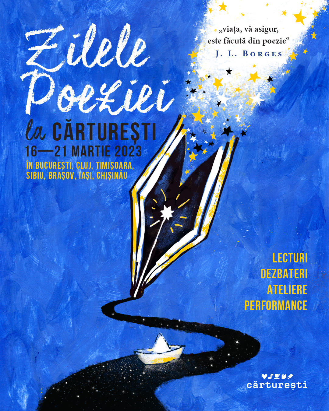 Cu ocazia Zilei Internaționale a Poeziei din 21 martie, librăriile Cărturești din țară și din Republica Moldova invită iubitorii de poezie la o serie de evenimente care sărbătoresc poezia așa cum se cuvine: oferindu-i timp, atenție și spațiu de expunere. Programul este gândit și conceput în spiritul celebrării noutății și diversității vocilor poetice, a puterii poeziei și a lumilor pe care ea le creează.