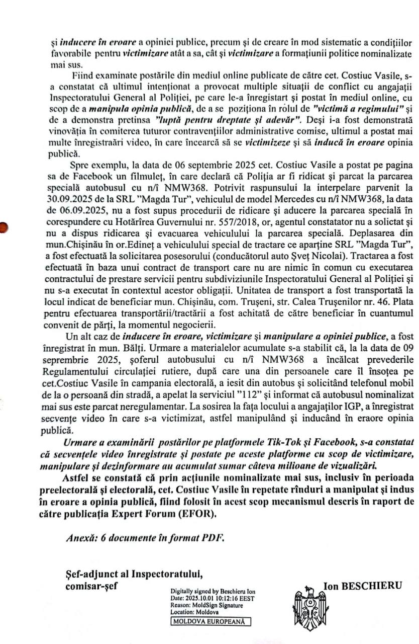 Astfel, se constată că prin acțiunile nominalizate mai sus, în perioada preelectorală și electorală, Vasile Costiuc, în repetate rânduri, a manipulat și a indus în eroare opinia publică, pe rețelele sociale, fiind folosit în acest scop mecanismul descris în raport de către publicație Expert Forum (EFOR).
