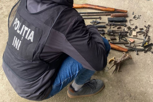 În timpul perchezițiilor la domiciliile și în mijloacele de transport ale suspecților cu vârste cuprinse între 35 și 50 de ani polițiștii au depistat și ridicat un pistol cu bile de cauciuc de model ,, Fort” - 12 P cal. 9 mm, un pistol pneumatic de model „Umarex” cal. 4,5 mm, un încărcător cu 5 cartușe cal. 9 mm, cu inscripția „Teren 3”, un încărcător pentru pistol cu 8 cartușe 9 mm, 164 de cartușe de calibru 12 mm, 11 de cal. 7,62 mm, 49 de cal. 5,6 mm și 13 de cal. 16 mm, o arma lungă cu țeava lisă de model „Baikal CM 2”, precum și o armă lungă cu glonț de model ,,Franchi Morizon,, cal. 308 Win și o armă pneumatică cu inscripția „PUMPMASTER”, zeci de piese și accesorii din metal și lemn pentru arme de vânătoare, un focos de la grenadă de luptă, piese din metal pentru lunete de vânătoare, camere de supraveghere pentru vânătoare, etc.