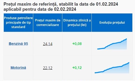Astfel, benzina se scumpește cu 8 bani. Prețul maxim de comercializare a unui litru de benzină va fi de 24 lei și 14 bani.