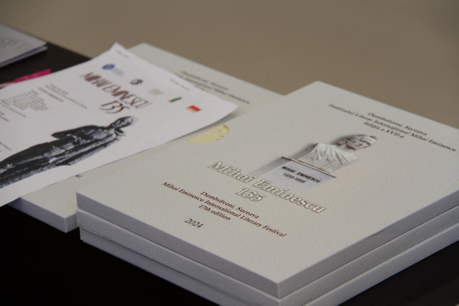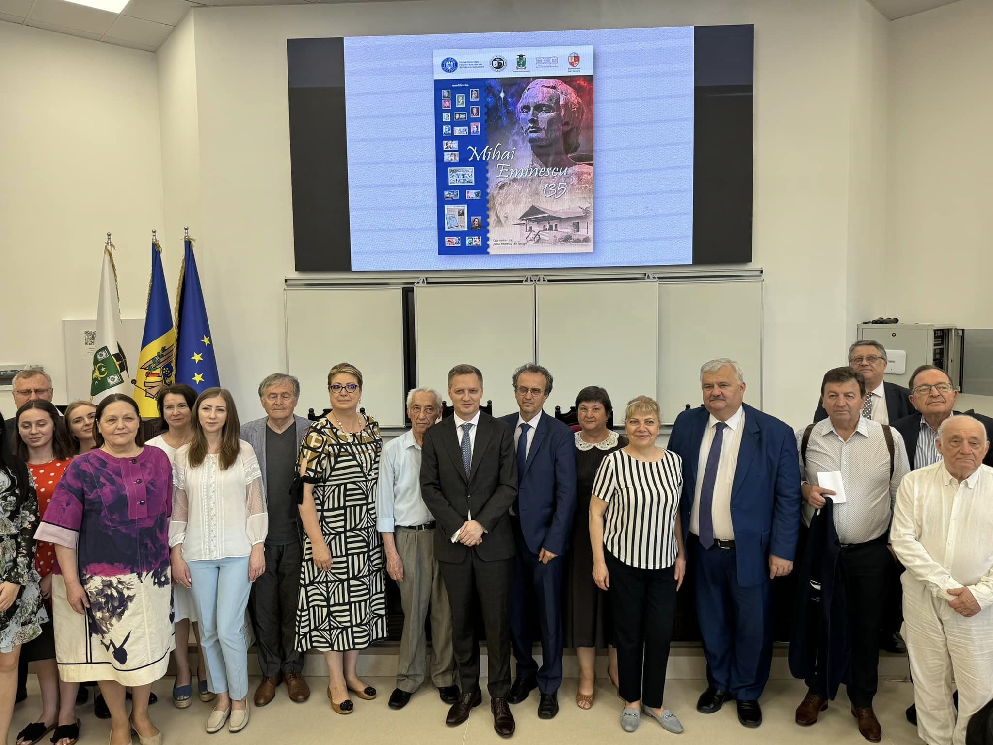 În Aula „Regina Maria" din cadrul Universității de Stat din Moldova (USM) a avut loc una dintre etapele proiectului, de comunicări științifice, la care au fost prezenți, alături de secretarul de stat al DRRM, Adrian Dupu, rectorul USM - Igor Șarov, directorul MNLR - Ioan Cristescu, directorul general Romfilatelia - Cristina Popescu, prof. univ. dr. Maria Șleahtițchi - director general MNLR Chișinău, și personalități recunoscute pentru studiul creației eminesciene.
