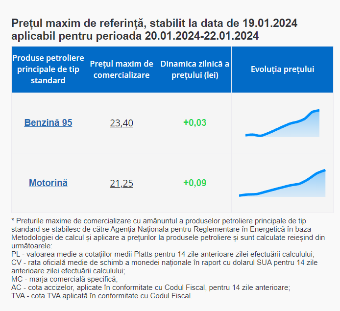 Pentru un litru de benzina, șoferii din R. Moldova vor scoate din buzunar 23 de lei și 40 de bani, iar pentru un litru de motorină vor achita 21 de lei și 25 de bani.