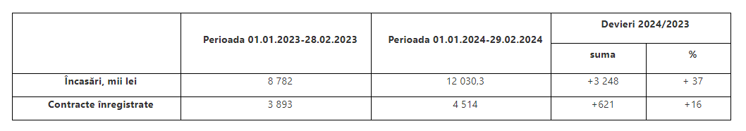 În rezultatul acțiunilor întreprinse în perioada ianuarie-februarie 2024, au fost înregistrate 4 514 contracte de dare în locațiune a bunurilor imobile sau cu 16% mai multe decât în perioada similară a anului 2023.
