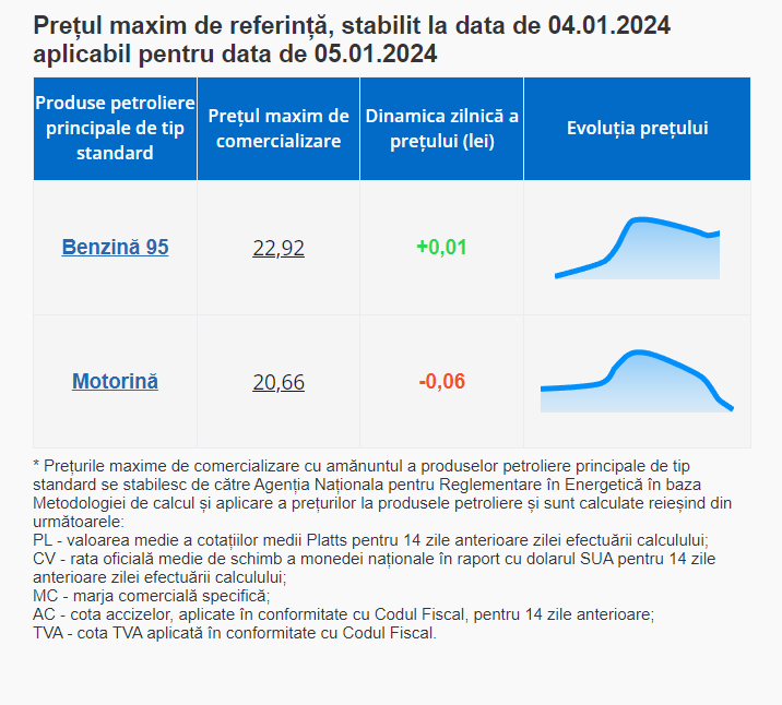 Agenţia Naţională pentru Reglementare în Energetică a stabilit preţuri noi la carburanţi pentru vineri, 5 ianuarie.