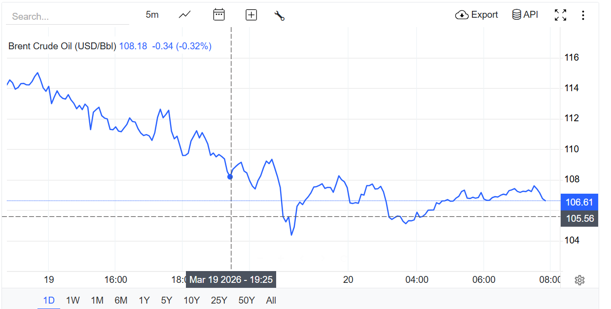 Cotațiile petrolului Brent au scăzut vineri sub 107 dolari pe baril, după ce în sesiunea anterioară urcaseră până aproape de 120 de dolari, pe fondul unor semnale de detensionare venite din partea Statelor Unite și Israelului, scrie TVRInfo.