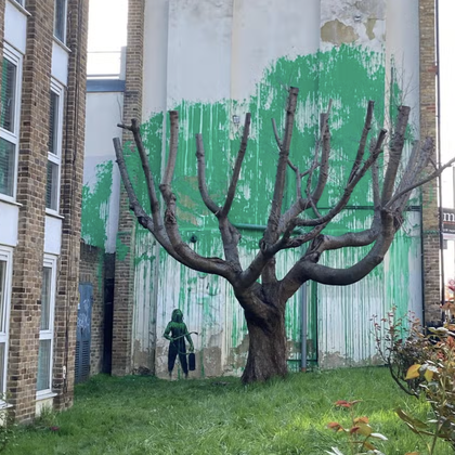 O operă de artă care a apărut peste noapte pe lateralul unei clădiri de lângă Finsbury Park din Londra...