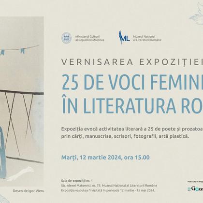 O expoziție cu genericul „25 de voci feminine în literatura română” va fi inaugurată marți,12 martie,...