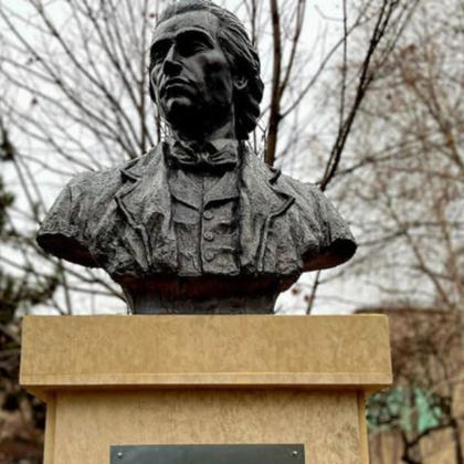 Un bust al lui Mihai Eminescu realizat de sculptorul Romeo Protopopescu, prima lucrare de acest fel...