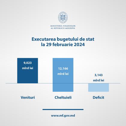 În luna februarie a anului 2024, veniturile totale ale bugetului de stat au constituit 9,023 miliarde...