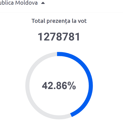 La ora 18:00, în regiunea găgăuză, se înregistrează o prezență de 40,23 la sută, 51.546 de alegători....