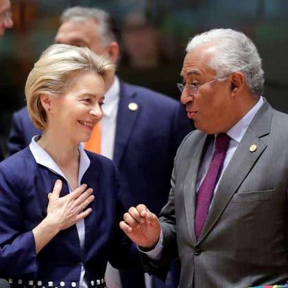 Preşedinta Comisiei Europene, Ursula von der Leyen, şi preşedintele Consiliului European, Antonio Costa,...