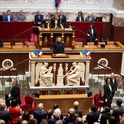 Preşedintele ucrainean Volodimir Zelenski a declarat vineri, de la tribuna Parlamentului Franței, că...