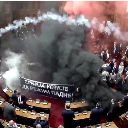 O dezbatere din legislativul de la Belgrad s-a transformat în haos. Parlamentarii opoziției sârbe au...