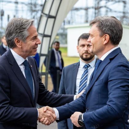Prim-ministrul Dorin Recean și secretarul de stat al SUA, Antony Blinken, au vizitat stația electrică...