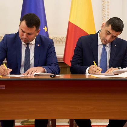 George Simion, președintele AUR, și Vasile Costiuc, președintele Partidului Democrația Acasă, PDA, au...